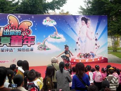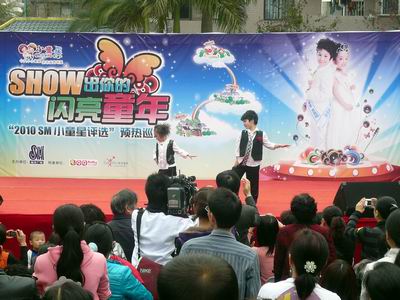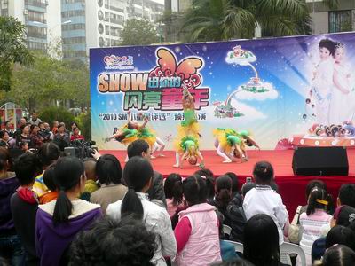 上午11点,刚刚布置好活动现场,就有许多家长前来询问2010年小童星的报名事宜,还有一些家长详细了解了我们即将巡演的各个社区,准备每个社区的巡演都去捧场,真可谓是小童星的忠实粉丝。下午的演出中,2009年小童星男女冠军张锦源和张世薇联袂表演了当下最流行的舞蹈——《sorry,sorry》,娴熟的舞步,自信的表情,看起来真是星味儿十足!不过,来自康桥大唐幼儿园和大唐灵灵幼儿园的小朋友们也毫不逊色,可爱逗趣的表演赢得了大家一次又一次