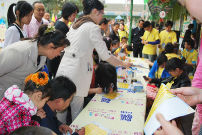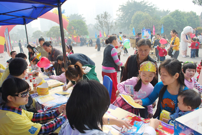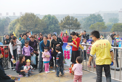 早上8点钟,贝多彩幼儿园的小朋友们就在家长的带领下热热闹闹地在幼儿园集合了。操场上设置的保龄球、旋转投篮等小游戏,吸引了不少小朋友参与其中。更让大家关注的还是“2010年SM小童星评选”的相关事宜,家长们蜂拥至咨询区了解比赛细则、填写报名表,现场气氛异常热烈。室外报名火爆、室内演出精彩纷呈。贝多彩幼儿园小朋友们表演的舞蹈《千手观音》因舞姿优美、造型艳丽而深受大家喜爱。现场抽奖环节又为现场的火热气氛加温。精美的陶瓷娃娃存钱罐,是每个小朋友都想得到的奖品。