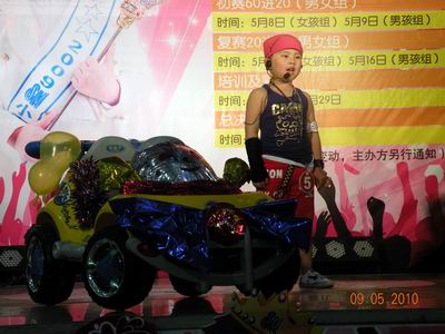 上个周末,SM广场的舞台再次汇聚四面八方的朋友,包括海选中突破重围、成功入围初赛的小朋友们,背后功臣老师和家长们,热心观众们,甚至还有选手的“粉丝”们……,庞大的人群让跃跃欲试的小选手们既紧张又兴奋,专心致志地做着赛前的准备工作,后台处练声、练舞、练武、练琴的,你方唱罢我登场,很是热闹。虽然晋级初赛的选手都已经在海选中亮过相,但老面孔为我们带来的新表演并没有让评委和观众失望,浓情蜜意的情歌对唱、惟妙惟肖的小小迈克杰克逊、刚气十足的武术表演、甜蜜可爱的《健康操》、韩国小朋友为我们演绎的正版《三只小熊》等精彩表演都为比赛注入了新的元素,为我们带来新的惊喜。别出心裁的装扮和完整的现场表演、眼花缭乱的道具和现场气氛的完美搭配让这场小童星阅兵仪式再续海选精彩,并有越演越烈之势。