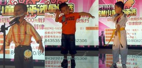 5月8、9日,SM小童星评选初赛在SM二楼舞台火爆开赛。由海选胜出的男女孩各60名小选手参加了比赛,他们齐聚一堂激烈争夺20强名额。