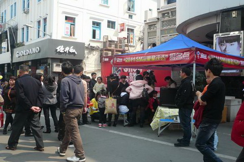 米奇与米妮与小朋友们合影,为小朋友们派发气球,成为了中山路一景。家长们围着报名区,积极了解赛事情况。有的家长不仅给自己的宝贝报名,还提自己亲戚朋友的小宝贝们一起报名,报名单一排热闹的情景。2011SM小童星社区巡演中山站的现场始终洋溢着小朋友们的欢声笑语和观众的阵阵掌声。