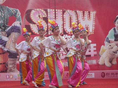 可爱的米奇米妮带着缤纷的气球一开始就受到小朋友们的欢迎,游戏区也成了热身的好场所,吸引了众多小朋友们的参与。舞台演出一开始就吸引了现场所有人的目光,海沧小金星和宇琳文化艺术中心的小朋友投入的演出,使现场观众忽略了飘落的细雨。