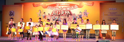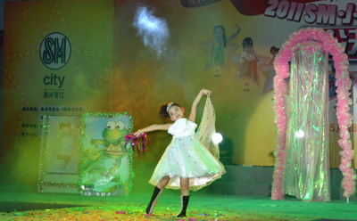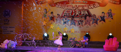 5月28日,晋江2011年“SM小童星评选”决赛在10位选手动感十足的开场秀中拉开帷幕,活力四射的演出让全场惊呼连连,场面火爆。而8号选手陈鸿锴和9号选手吕洁分别凭借精彩的武术表演《小小英雄,英雄出少年》和舞蹈《HEY,小可爱》获得“2011SM小童星”称号并获得3000元教育成长基金,以及菲律宾快乐行的奖励。