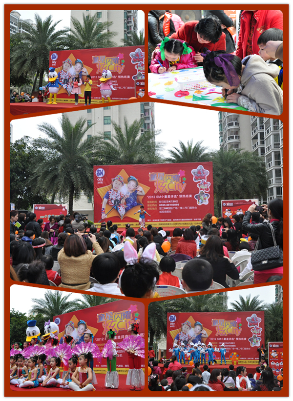 上周日,石狮金汇小区迎来了一群新朋友——“SM小童星评选”往届小童星及社区幼儿园的小朋友们,他们载歌载舞,为社区居民带来了一场精彩视觉盛宴,也掀开了2012小童星社区巡演的首场序幕。
