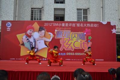 3月3日、4日,2012SM小童星社区预热巡演走进了前埔南区和金山小区,为两个小区居民带去精彩的演出、趣味的游戏。来自音之舞、大风车艺术幼儿园和鹏程武术馆的小童星和小伙伴们的演出,吸引了众多家长小朋友关注并纷纷现场报名参加今年的SM小童星评选。