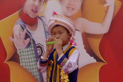 在金尚小区站的活动现场,2011年SM小童星前10强之一的小童星邵泓博,现场为大家演奏了葫芦丝及陶笛。通过短短一年多的葫芦丝学习,泓博不仅能娴熟地吹奏整首歌曲,对乐律、节奏的把握也很到位。再瞧瞧他极强的舞台感——脚踩节拍,手持葫芦丝,伴随着音乐的旋律在舞台上尽情演出,现场观众都陶醉在他演奏的美妙旋律中。